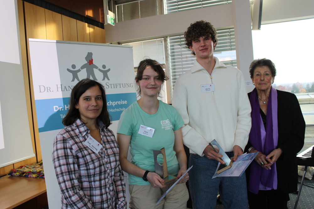 Am 16.11.25 durfte Flora den Preis gemeinsam mit ihrer Familie und ihrer betreuenden Lehrkraft, Herr Gondring, im Senatssaal der Naturwissenschaftlichen Fakultät in Mainz entgegennehmen. Sie darf sich über ein Preisgeld in Höhe von 600 € und die Aufnahme in den MINT-Tank, ein Netzwerk der Dr. Hans Riegel-Fachpreise zur Förderung des Wissenschaftsnachwuchses, freuen.