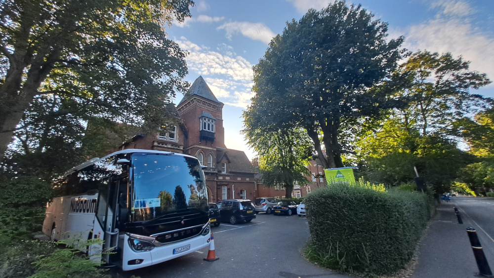 On Monday we met at school very early in the morning. After saying goodbye to our parents, we got on the bus and set off for England together with Mrs. Fohr-Knappe and Mrs. Schmitt. The journey was quite pleasant as we had plenty of breaks. In the evening, we arrived at our hostel and moved into our rooms. These were large enough for four to six people and offered plenty of space for luggage. We spent the rest of the evening either inside the hostel or in the garden where we could sit together and talk.