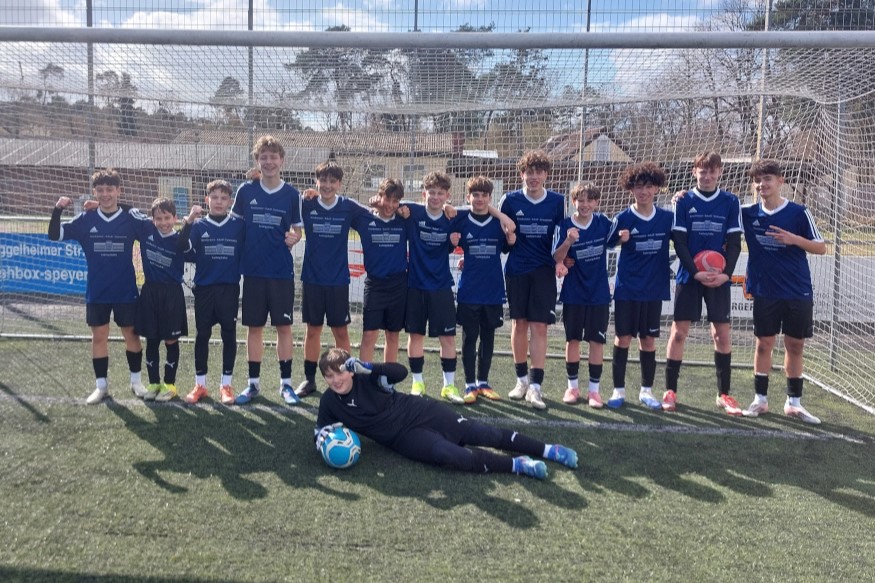 Wir erzielten hierbei zwei klare Siege gegen die RS+ Limburgerhof (3:0) und gegen das Rudi-Stephan-Gymnasium aus Worms (6:0). Das Spiel gegen die RS+ aus Schifferstadt wurde zum Endspiel, da auch Schifferstadt die beiden anderen Partien gewonnen hatte. In diesem entscheidenden Spiel entwickelte sich eine ausgeglichene und taktisch gute Partie gegen einen starken Gegner. Beide Teams agierten mit hoher Intensität und Disziplin. Auf jeder Seite gab es nur eine Großchance, die jeweils ungenutzt blieb. Das 0:0 war leistungsgerecht und führte schließlich in das Elfmeterschießen. Die Nerven lagen bei beiden Mannschaften blank; insgesamt verschoss der Gegner viermal, wir aber nur dreimal. Unser Torwart Jonas war zweimal entscheidend zur Stelle und Blerim verwandelte den letzten Elfmeter eiskalt – der Sieg war perfekt. Glückwunsch an das gesamte Team. Weiter so und viel Erfolg im Viertelfinale.