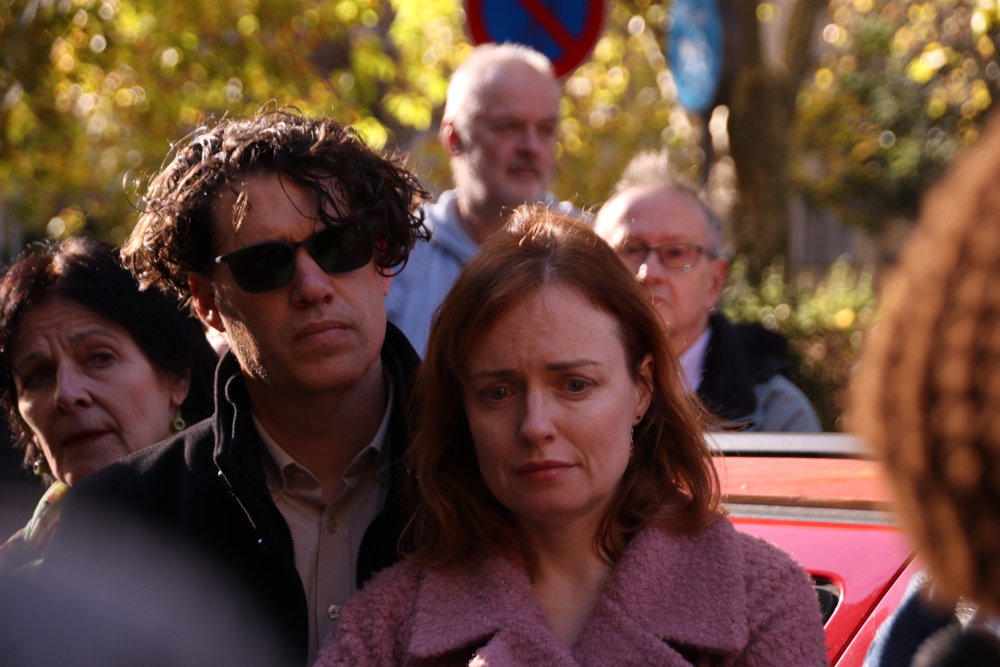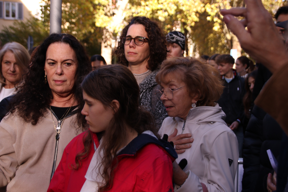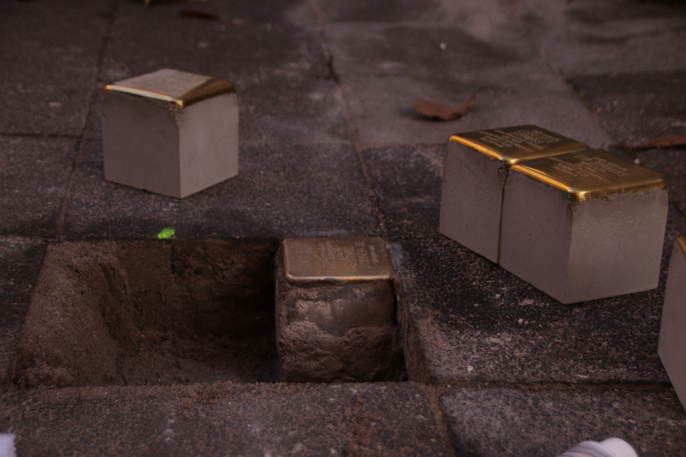 Bei der Verlegung halfen die Urenkel der drei Schwestern beim Einsetzen der mit Messingplatten versehenen Stolpersteine, während der Sohn von Liselotte und die Tochter von Eva Texte über ihre Mütter vortrugen.